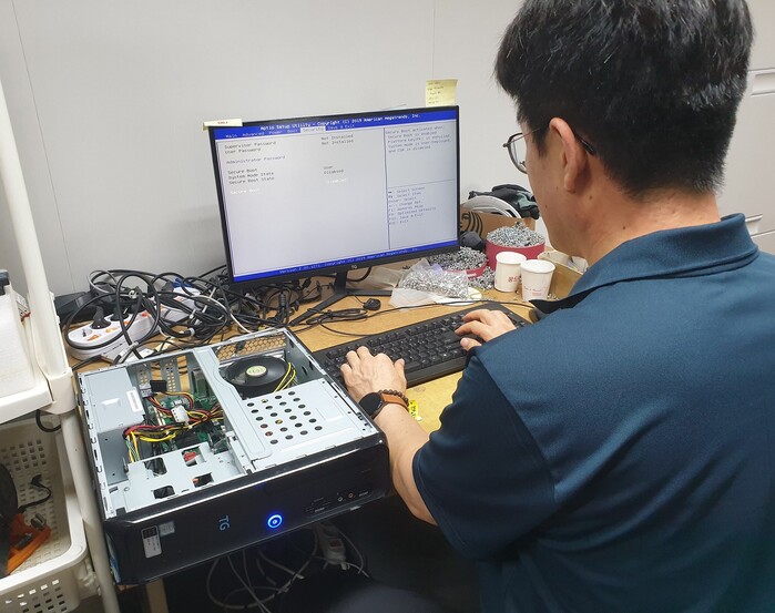 | ▲ 중고 컴퓨터를 정비하는 구 관계자의 모습 (사진=종로구청 제공) |