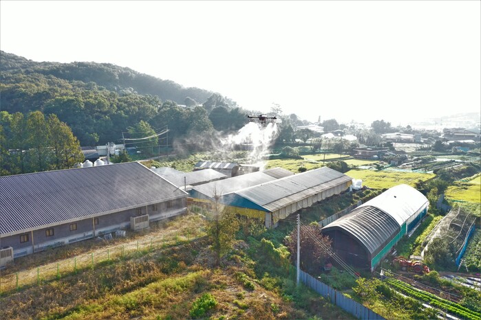 이어, 가금농장을 대상으로 고병원성 AI의 주요 원인인 철새의 분변을 소독하고, 첨단 드론을 이용한 맞춤 방역도 시행하고 있다.