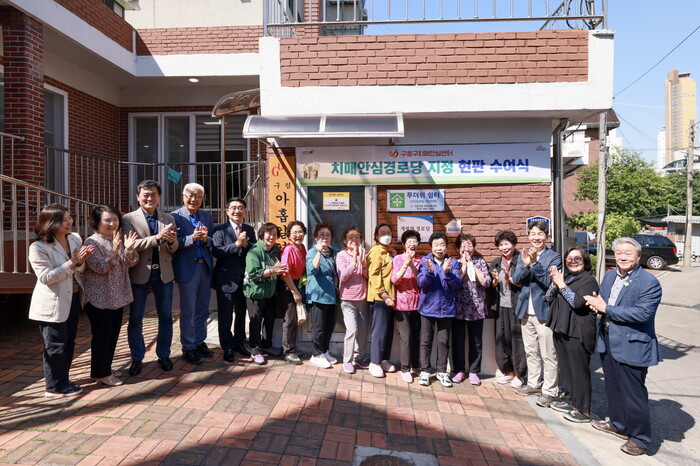 [시민일보 = 이대우 기자] 구로구(문헌일 구청장)가 13일 구로2동 아홉길 경로당을 6번째 치매 안심경로당으로 지정해 현판식을 개최했다.