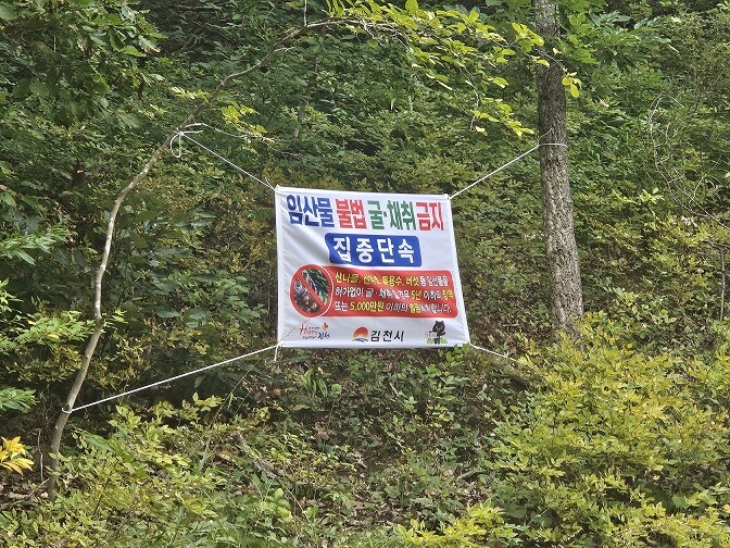 특히, 김천시 산림녹지과 단속반은 지난 주말 동안 산림 내 불법행위 근절을 위해 부항면 일대 단속하고 현수막 설치 등 계도 활동을 시행했다.