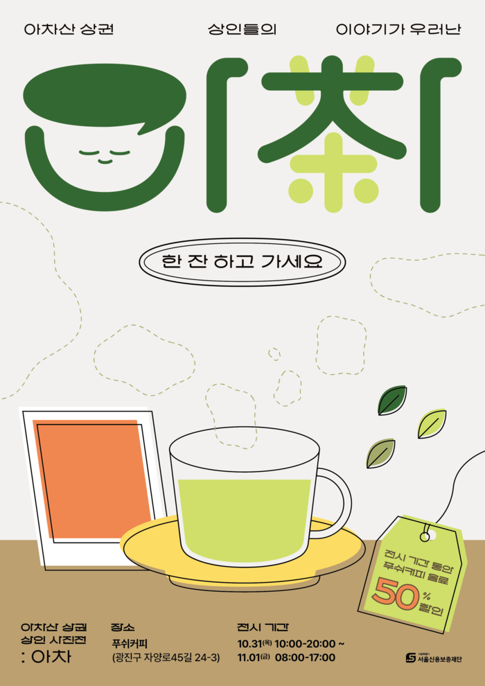 카페 안에는 티백을 활용한 상품과 홍보책자를 비치한 팝업스토어로 꾸며 즐길 거리를 마련한다. 차 할인행사와 공공배달앱인 ‘땡겨요’ 홍보물품도 증정한다. 더 자세한 사항은 구 지역경제과로 문의하면 된다.
