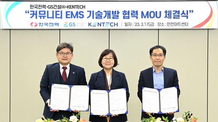 [시민일보 = 여영준 기자] 한국전력(한전)은 지난 17일 한전아트센터에서 '한전-GS건설㈜-KENTECH간 커뮤니티 에너지관리시스템(커뮤니티 EMS) 기술개발' 협력 MOU를 체결했다고 밝혔다.