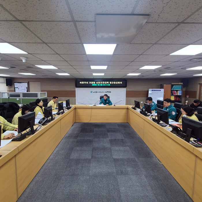경기 의정부시가 8일 겨울철 한파로 인한 시민 피해를 최소화하기 위해 ‘시민안전대책 중간점검 회의’ 개최했다. 사진은 회의에 참석한 박성남 부시장(가운데)이 회의를 진행하는 모습. (사진=의정부시청 제공)