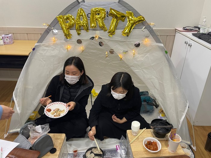 경기 안산시 청소년지원센터 ‘꿈드림’은 최근 학교 밖 청소년 16명을 대상으로 ‘낭만 홈캠핑’ 프로그램을 비대면으로 진행해 각자 가정에서 텐트를 치고 음식을 준비하며 색다른 캠핑을 경험했다. 사진은 이날 참가자들이 낭만 홈캠핑에 참여하고 있는 모습. (사진제공=안산시청)