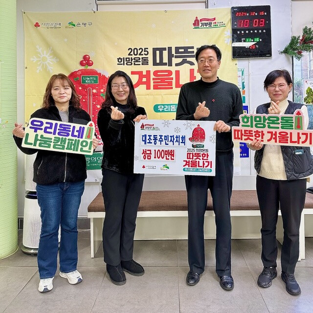 [시민일보 = 이대우 기자] 은평구(구청장 김미경) 대조동은 최근 주민자치회가 희망온돌 따뜻한 겨울나기 성금 1백만 원을 기부했다고 밝혔다.