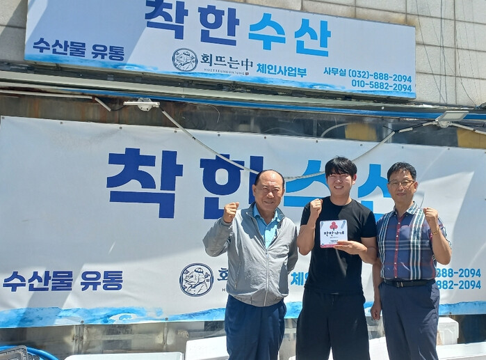 이번에 착한가게에 동참한 ‘착한수산’은 당일 주문 당일 배송 시스템, 수질 상태 매일 점검, 최상의 신선도 유지 등에 최선을 다하고 있는 연안부두 대표 활어 유통 전문 업체 중 하나다.