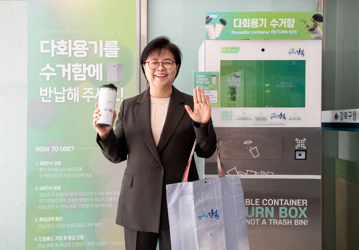 강북구는 현재 구청 내 다회용컵 무인반납기를 설치해 직원들이 1회용 플라스틱 컵 또는 종이컵 대신 다회용컵과 텀블러를 사용하도록 하고 있다.