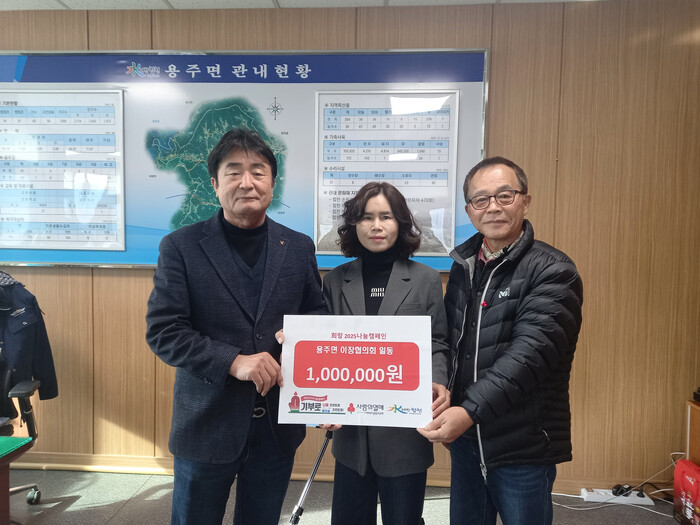 김필선 용주면장은 “지역주민을 생각하고 더불어 살아가는 나눔실천에 동참해주신 윤부한 이장협의회장님과 이장님들께 감사드린다”며 “기탁된 소중한 성금은 필요한 곳에 소중히 쓰일 것”이라며 “이번 나눔이 더 많은 이웃들에게 희망을 전하는 계기가 될 것”이라고 말했다.