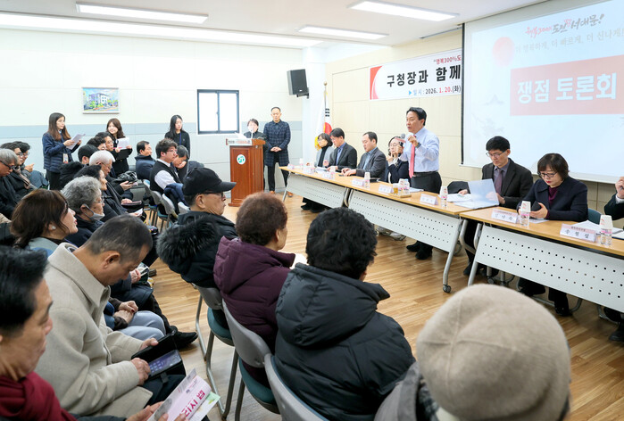 특히 보고 중심에서 벗어나 동별 최대 현안 사업을 주제로 주민들과 ‘쟁점 토론회’를 열고 실질적 해결을 위해 격의 없이 의견을 나눈다.