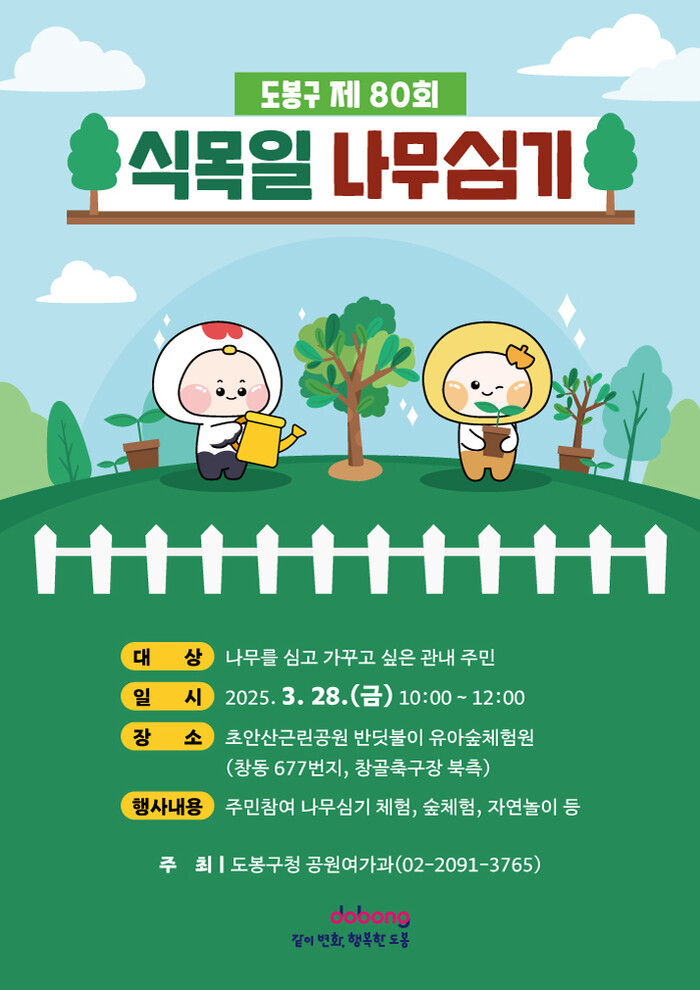 [시민일보 = 문민호 기자] 도봉구(구청장 오언석)가 제80회 식목일(4월5일)을 맞이해 28일 초안산근린공원(반딧불이 유아체험원)에서 나무심기 행사를 개최한다.