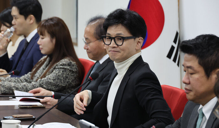 한 위원장은 이날 오전 서울 여의도 중앙당사 출근길 기자들과 만나 '개혁신당'과 관련, "정당은 지향점과 정체성이 같아야 다고 생각한다"면서 "선거에서 배지를 다는 방법을 찾기 위해 모인 것"이라고 했다.