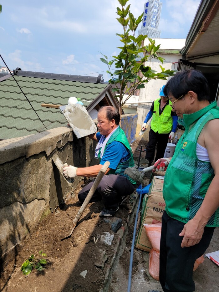 느긋하게 점심 먹을 시간도 없이 오후에는 지난 7월 폭우로 담장 붕괴 우려가 있는 어르신 댁에 찾아가 보수 작업을 펼쳤다. 차가 올라갈 수 없는 좁은 골목길이라 직접 시멘트를 지고 더위와 싸우며 깨끗하게 담장을 수리했다. 삼선동 새마을지도자들의 활동은 쉽게 끝나지 않았다. 매주 금요일마다 동네 방역이 펼쳐진다. 이날도 어김없이 방역 차량 2대와 오토바이를 이용해 자율방역 활동을 실시했다.