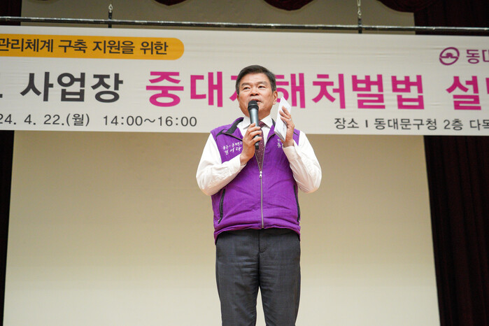 [시민일보 = 이대우 기자] 서울 동대문구(구청장 이필형)는 최근 구청 다목적강당에서 개최한 소규모 사업장 대상 중대재해처벌법 설명회가 성황리에 마무리되었다고 밝혔다.