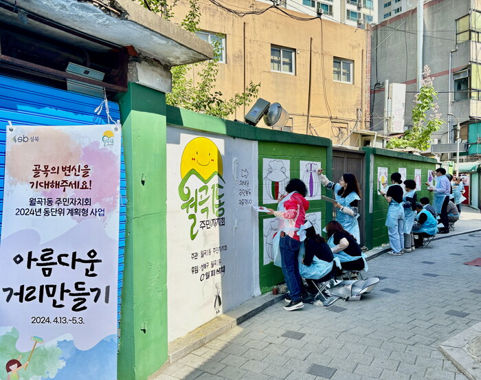 | ▲ 월곡1동 주민들이 벽화 그리기에 참여하는 모습. (사진=성북구 제공) |