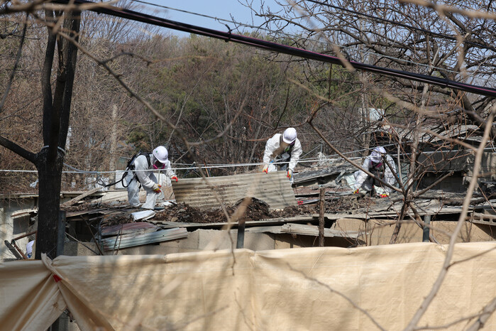 | ▲ 지난 11일 노원구 백사마을 석면을 제거하고 있다. (사진=노원구청 제공) |
