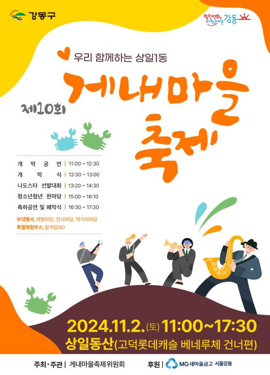 심완보 게내마을축제위원장은 “그동안 이어온 게내마을축제를 한층 더 발전시키고 실속 있게 진행할 계획이다”라며, ”상일1동 주민분들을 비롯해 방문객분들이 이번 축제에서 즐거운 추억을 쌓으시길 바란다”라고 말했다.
