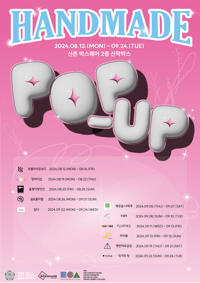 핸드메이드 팝업스토어에 대한 자세한 내용은 신촌 박스퀘어 홈페이지와 인스타그램에서 확인할 수 있다.