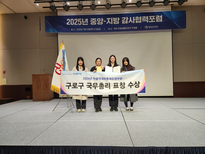 구로구가 지난 20일 행정안전부 주관 2024년 공직기강확립유공 포상 분야 중 정부 포상의 ‘자율적 내부통제 운영’ 분야에서 서울시 자치구 중 유일하게 국무총리 표창을 수상했다. 사진은 표창 수상 후, 구 관계자들이 기념 촬영을 하는 모습. (사진=구로구청 제공)