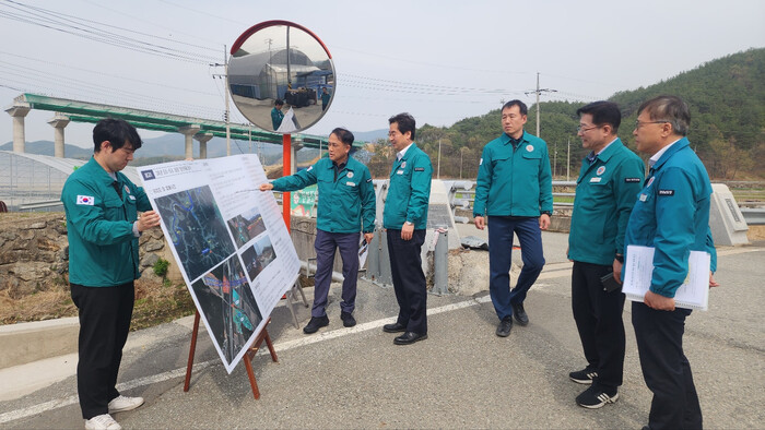 이어 점검한 합천읍 풍수해생활권 종합정비사업은 2022년부터 총사업비 400억원 규모로 추진 중이며, 상습 침수지역의 하천 및 배수로를 정비해 재해 위험을 근본적으로 해소하기 위한 사업이다. 천 본부장은 제방 보강과 하천 정비 구간 등을 둘러보며 “우기 전 주요 공정이 마무리될 수 있도록 철저한 현장 관리와 주민 불편 최소화에 힘써달라”고 당부했다.