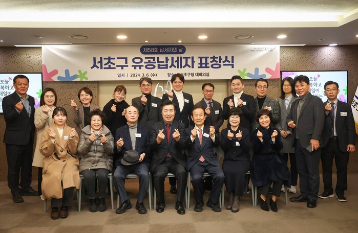 [시민일보 = 이대우 기자] 서울 서초구(구청장 전성수)가 제58회 납세자의 날(3월 3일)을 맞아 지난 6일 ‘2024년도 서초구 유공납세자 표창 수여식’을 열었다.