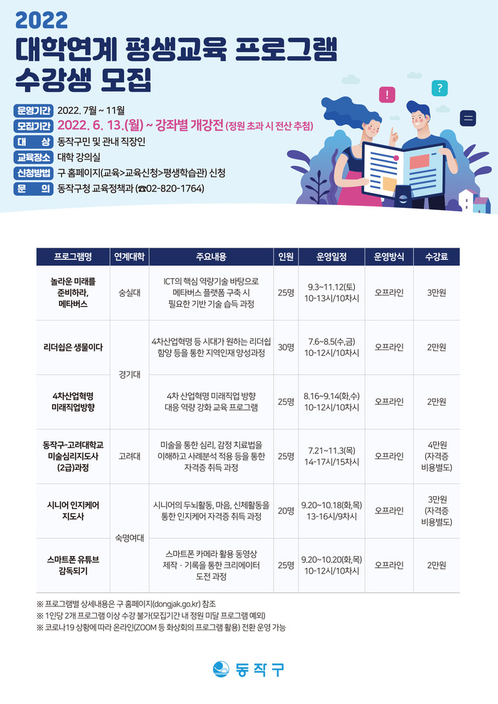 | ▲ 2022 대학연계 평생교육 프로그램 홍보물. (사진제공=동작구청) |