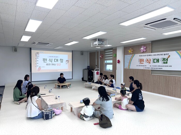 경기 구리시 어린이·사회복지급식관리지원센터는 최근 총 사흘간 3~5세 유아와 부모 22가족을 대상으로 특화프로그램 ‘편식대첩’을 진행했다. 당근을 주제로, 당근 목걸이 만들기 등의 활동을 하며 당근과 친해지는 시간을 보냈다. 사진은 특화프로그램 ‘편식대첩’을 진행하고 있는 모습. (사진=구리시청 제공)