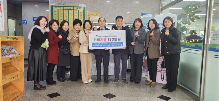 [시민일보 = 박소진 기자] 성동구(구청장 정원오) 금호2·3가동은 금호사랑장학회가 금호2·3가동 지역내 국공립어린이집 9곳으로부터 장학금 180만원을 기탁받았다고 밝혔다.