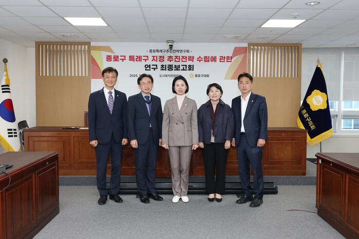 김하영 대표의원은 “종로는 국가 주요 기능이 밀집된 중심도시이자 전통과 현대가 공존하는 상징적인 공간으로, 종로의 특수성을 반영한 행정체계 마련이 필요하다”며 “이번 연구는 그 첫걸음으로, 종로의 도시적 정체성과 행정 수요를 체계적으로 짚어보고 앞으로 나아가야 할 방향을 함께 고민하는 계기가 됐다”고 밝혔다.