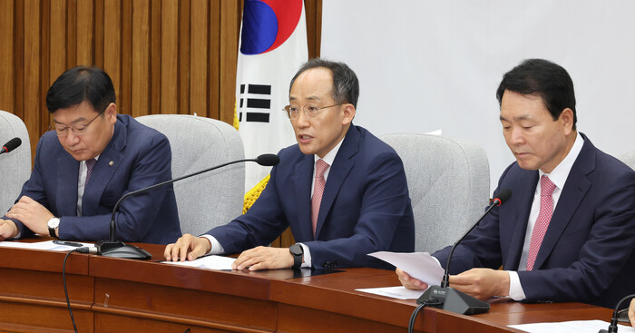 추 원내대표는 "중진 의원들도 각자 그런 부분에 적극적으로 나서서 활동하고 뜻을 모아주겠다는 말씀을 주셨다"고 전했다. 그러면서 "채상병 특검법에 반대하는 것은 당론"이라고 강조하기도 했다.