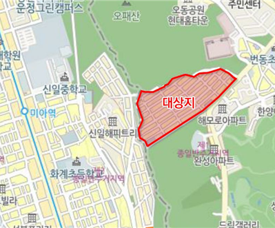 | ▲ 번동 148 재개발 사업구역 대상지. (사진=강북구청 제공) |