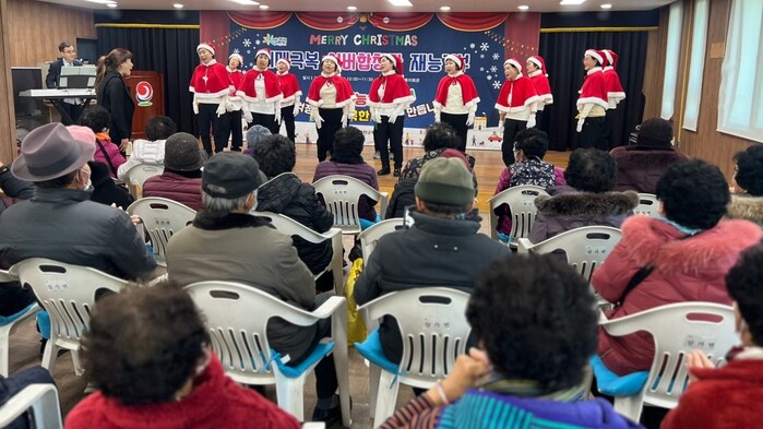 삼가면 합창단은 ‘찐이야’를 시작으로 ‘진또배기’ ‘징글벨’ ‘아리랑’ 무대로, 적중면 합창단은 ‘브라보 아줌마’ ‘아빠의 청춘’무대로 어르신에게 큰 호응을 얻었다. 이외에도 적중면 라인댄스 동아리에서도 재능기부에 함께 참여해 분위기를 고조시켰다.