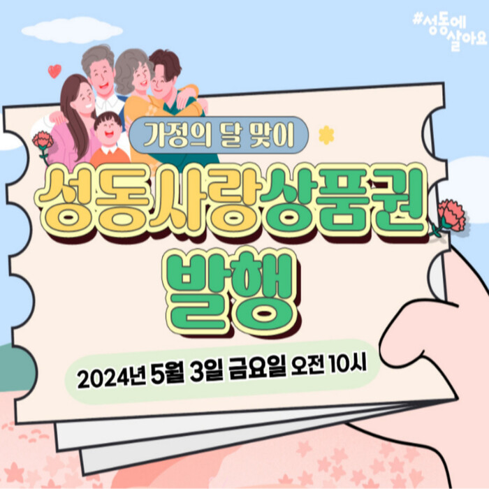 [시민일보 = 변은선 기자] 성동구(구청장 정원오)는 5월 가정의 달을 맞이해 100억원 규모의 '성동사랑상품권'을 발행한다고 1일 밝혔다.