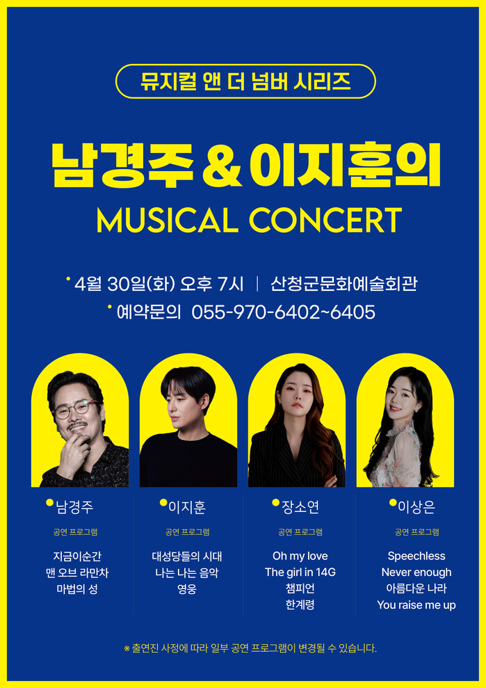 공연은 한국 뮤지컬 대표 배우인 남경주와 다양한 작품 속에서 관중을 사로잡는 가창력과 연기력을 보여주는 배우 이지훈이 출연한다.