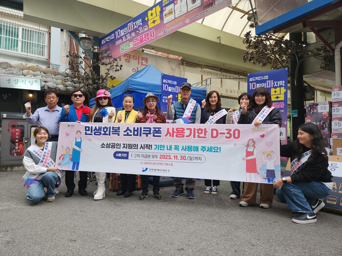 [인천=문찬식 기자] 인천 연수구(구청장 이재호)는 민생회복 소비쿠폰 사용기한(11월 30일)이 임박함에 따라 지난달 31일 송도역전시장에서 민생회복 소비쿠폰 사용 독려 캠페인을 했다.
