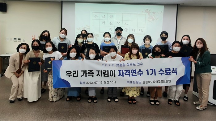 연수는 ▲부모와 아이 사이 슬기로운 대화법 ▲MBTI를 활용한 우리 가족 테라피 ▲편식예방을 위한 올바른 간식 만들기 ▲가정에서 함께하는 유아 성교육 ▲부모공감 원격연수 등으로 운영됐으며, 연수에 성실히 참여한 부모에게 「우리 가족 지킴이 자격연수 이수증」을 증정했다.
