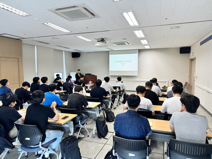 경상국립대학교병원 응급의학과 성애진 교수가 강사로 참여해 ‘현장에서 자주 발생하는 응급질환의 초기 처치법’을 주제로 실습 중심의 교육을 진행했다.