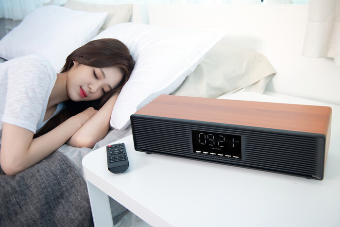 전면 2개의 유닛과 하단 2개의 우퍼가 조합된 ‘우드클래식’은 작은 크기에도 최대 140W급 출력을 제공한다. 중저음과 고음을 명료하게 구분해 클래식 음악은 물론 최신 K-pop 음악도 입체적으로 들려준다. 함께 제공되는 리모컨을 통해 ‘우드클래식’의 모든 기능을 조작할 수 있고, 전면 디스플레이 하단의 버튼으로 알람 설정도 가능하다.