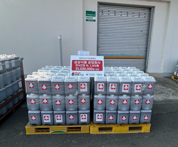 청덕면에 소재한 삼상식품 유명희 대표는 “모두에게 풍요로운 명절이 되길 바라는 마음으로 삼상식품에서 생산한 간장을 매년 기탁하고 있다”며, “앞으로도 이웃들과 함께 동행하는 기업이 될 수 있도록 노력하겠다”고 전했다.