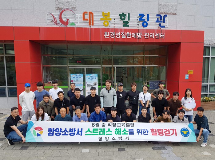 동시에 3층 강당에서는 함양관내 소방관 41명이 방문하여 3층 강당에서 컵꾸미기를 하고 숲 치유선생님과 함께 스트레스 해소를 위한 힐링 걷기를 하고, 휴양밸리관 1층 식당에서 식사를 하고 귀가 하였으며. 이어, 6월22일과 23일에도 방문하여 함양관내 소방관 150여명이 대봉힐링관을 방문하여 스트레스 해소 프로그램을 이용하였다.