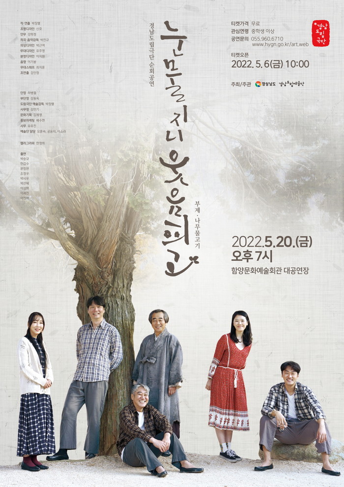 출연진으로는 제38회 경남연극제에서 연기대상을 받은 박승규, 거창 출신으로 드라마 보이스 등에 출연한 한갑수, 올해 경남연극제 연기대상을 수상한 박시우, 지난해 ‘연극 토지Ⅱ’로 경남도민을 만났던 문창완, 조정우, 박선혜 배우가 출연하여 탄탄한 공연이 될 것으로 기대된다.
