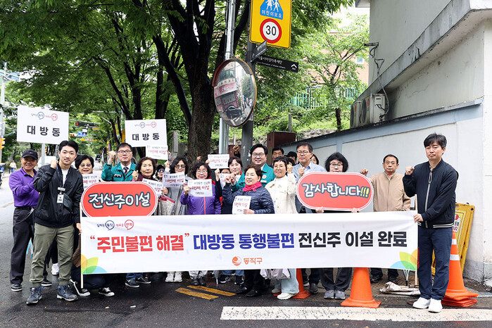 구는 지난해부터 올해까지 상도 4동, 사당동 등 관내 통학로 및 주택가 도로 가운데 있어 통행을 방해하는 전신주 14개를 이설해 보행 환경 및 도시미관을 개선해왔다.