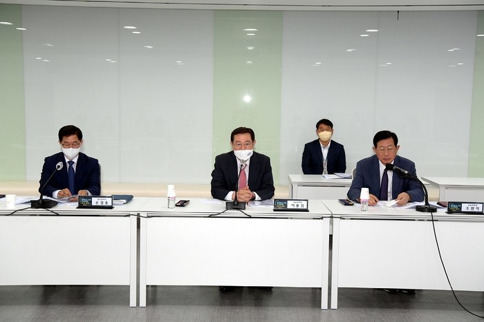 | ▲ 이용섭 광주광역시장이 2일 오전 시청 회의실에서 열린 광주 AI-뉴딜추진위원회 제7차 회의 참석해 새정부 지역균형발전 패러다임 전환에 발맞춰 산업분야 국정과제 지역공약 현황을 청취하고 실행력 확보방안을 논의하고 있다./광주광역시 제공 |