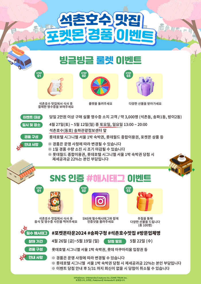 특별히, 송파구가 프로젝트 관람객들의 소비 촉진을 위해 마련한 ‘석촌호수 맛집 포켓몬 경품 이벤트(이하 경품 이벤트)’가 큰 관심을 받고 있다.