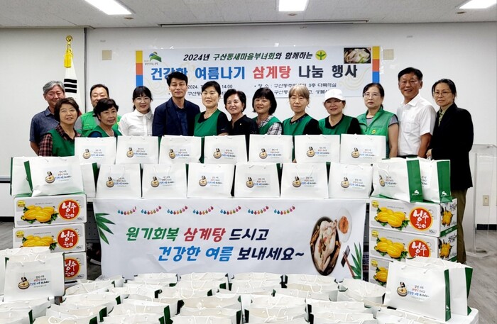 매년 구산동 새마을부녀회는 여름 삼계탕 나눔행사 등 저소득 어르신을 위해 꾸준히 봉사해 오고 있다.
