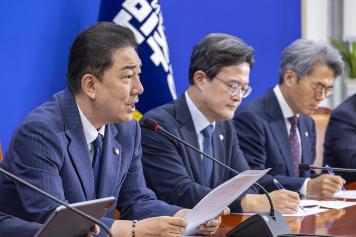 더불어민주당 김병기 원내대표는 16일 오전 국회에서 열린 원내대책회의에서 앞서 당론 발의된 정부조직법 개정안을 언급한 뒤 “정부 조직개편을 신속하게 추진하겠다”며 “정부 조직개편은 민생경제 회복, 대한민국의 미래에 직결된 중대 과제”라고 말했다.
