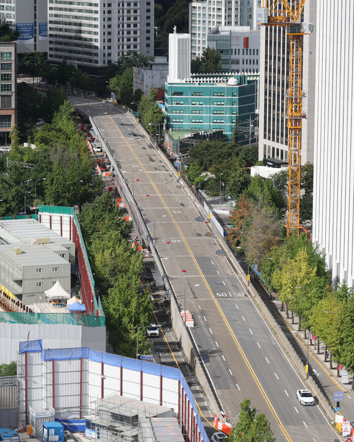 21일 서울 서소문고가차도가 철거 공사를 위해 전면 통제되고 있다. 서소문고가차도는 충정로역과 시청역을 잇는 18개의 교각으로 구성된 길이 335m, 폭 14.9m의 도로다. 정밀안전진단에서 'D등급' 판정을 받는 등 단순 보수공사만으로는 한계에 직면해 안전상 이유로 철거가 결정됐다.