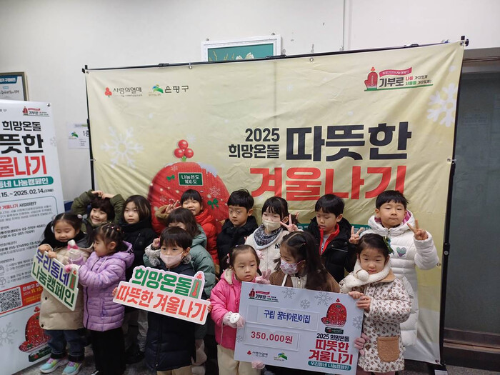 구립 꿈터어린이집은 아이들이 직접 만든 귤 청을 판매한 수익금으로 성금 35만원을 마련했다.