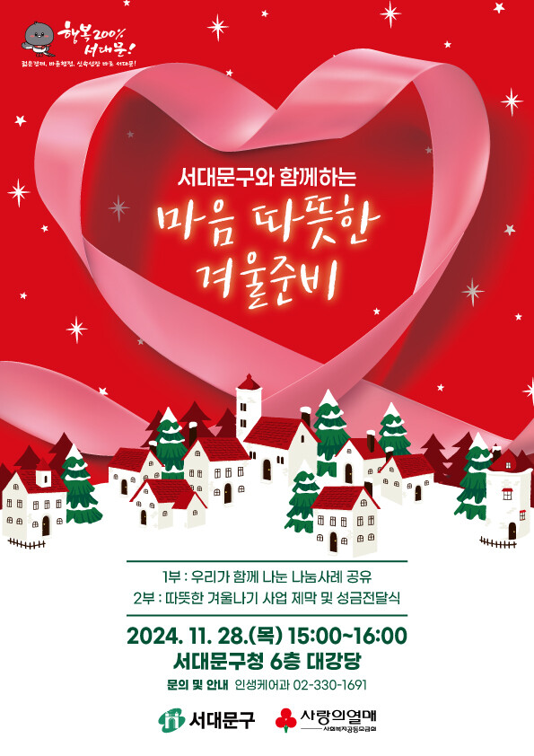 [시민일보 = 이대우 기자] 서대문구(구청장 이성헌)가 15일부터 ‘2025 희망온돌 따뜻한 겨울나기’ 캠페인을 추진한다.