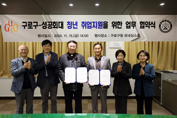 [시민일보 = 박소진 기자] 구로구가 최근 구청 르네상스홀에서 지역 청년들의 취업 지원을 강화하기 위해 성공회대학교와 업무협약을 체결했다고 18일 밝혔다.