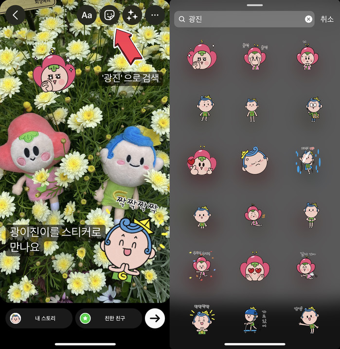 | ▲ 인스타그램에서 활용되고 있는 광이진이 스티커.(사진제공=광진구청) |
